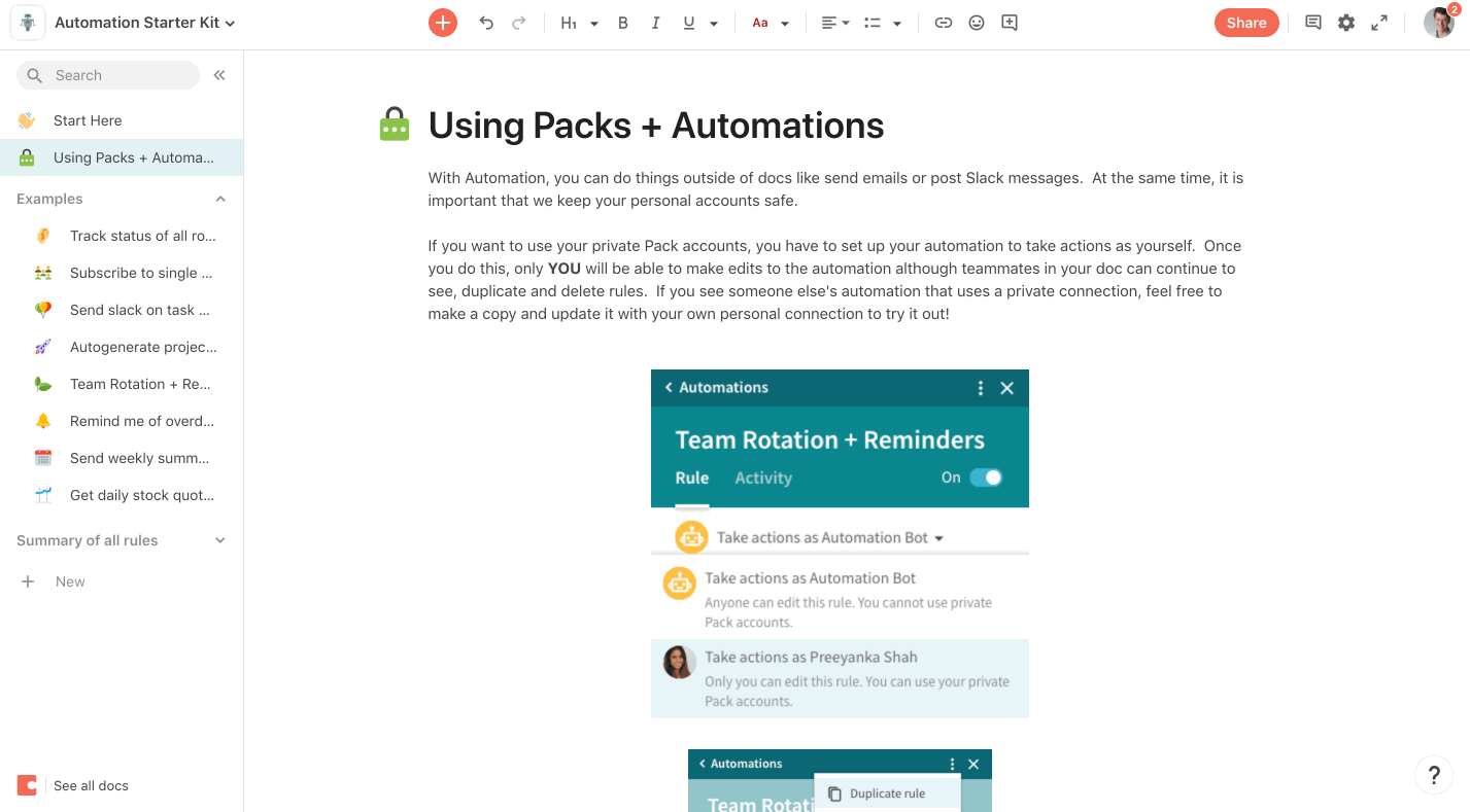 You can check out the Automations in this doc by opening the Automation panel ➡️