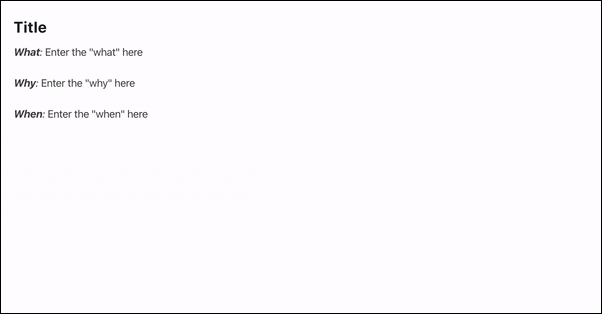 Open your calendar and get exact. Deadlines can seem arbitrary, even if they aren't. Your decision's when should reflect the timeline itself as well as the reasoning behind it. Why that date? Why that duration? Providing the extra context of when helps decision stakeholders connect the dots between the what and why.