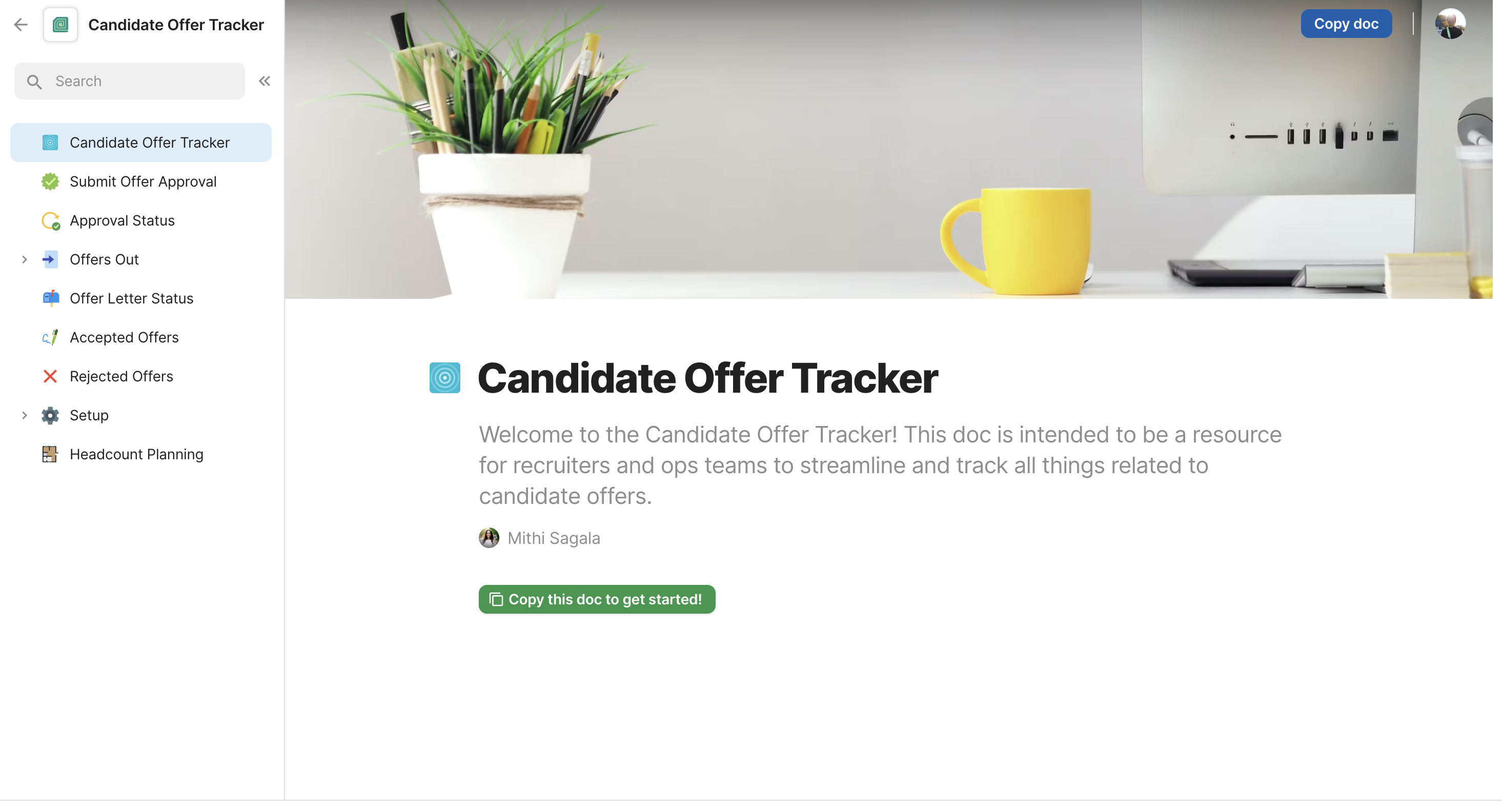 Use Coda to keep your ducks in a row! When it comes to offers, there are many critical details which must be front and center at all times. It can be difficult to manage all of the moving pieces. Create a template which allows you to track your offers and associated statuses and action items. And so much more!