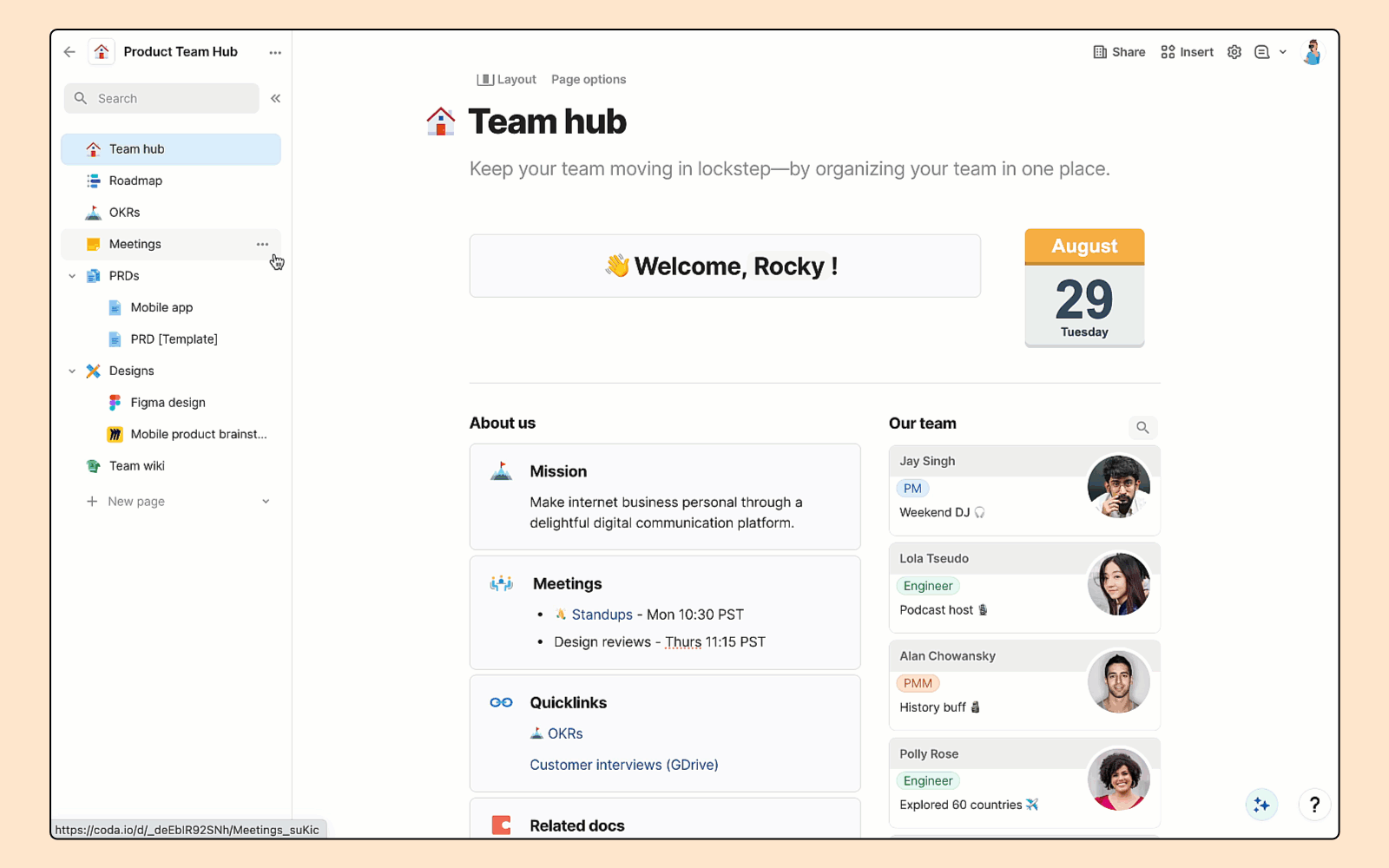 So in response to my friend’s prompt, I set out to create the single definitive handbook to frame the most interesting product team rituals and how to adopt them in Coda. I’ve distilled common problems and insightful approaches into a set of templates, customer stories, and advice on how to run key product rituals.