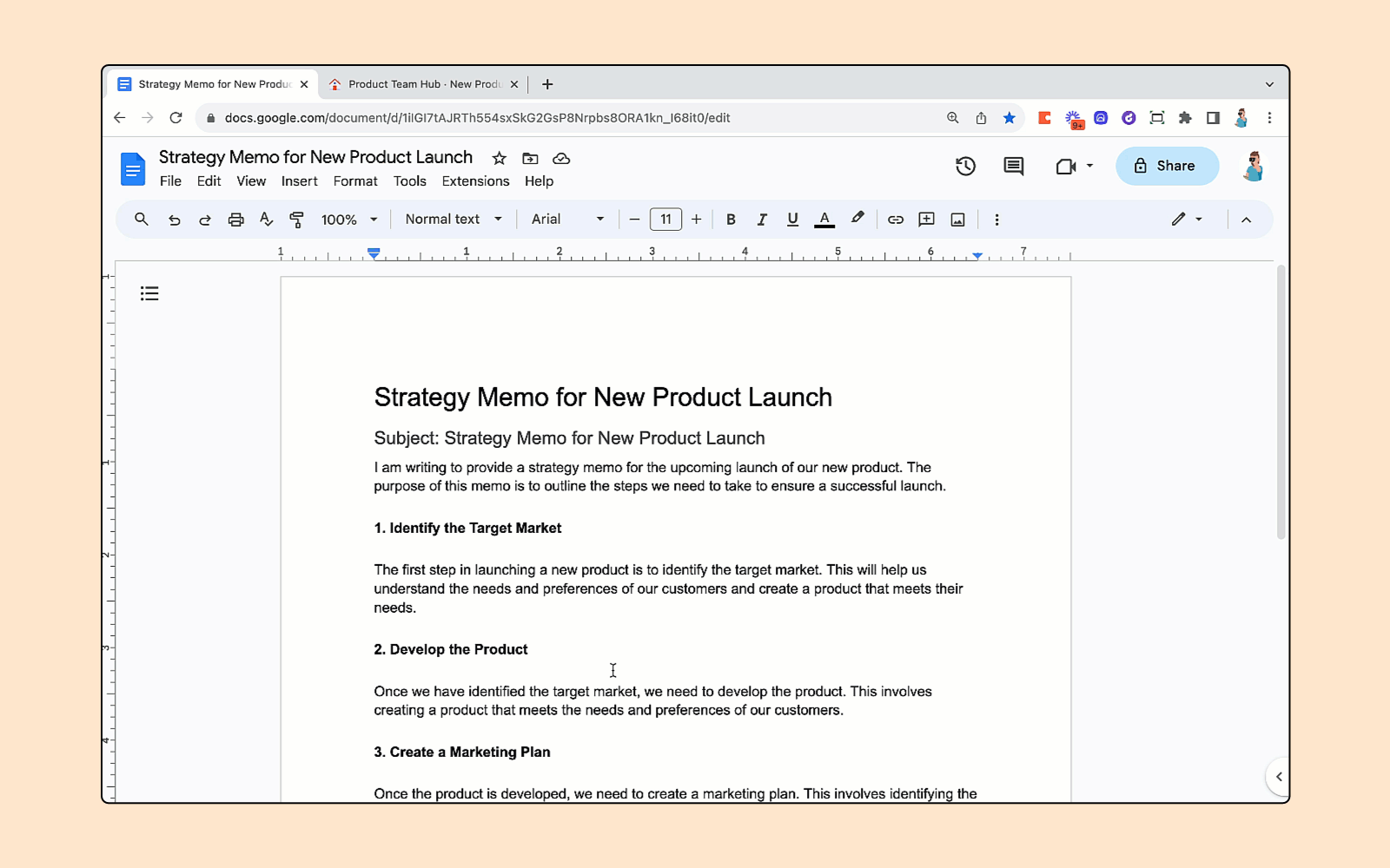 Should each writeup live in a distinct doc or inside other docs? Most teams using Coda end up organizing most of their writeups inside their . It’s a natural place as it’s where the team already lives and often contains data and references that are included in the writeup. That said, creating a new doc for each writeup is totally fine too. Pro tip: Type coda.new into your browser to quickly get a fresh new doc.