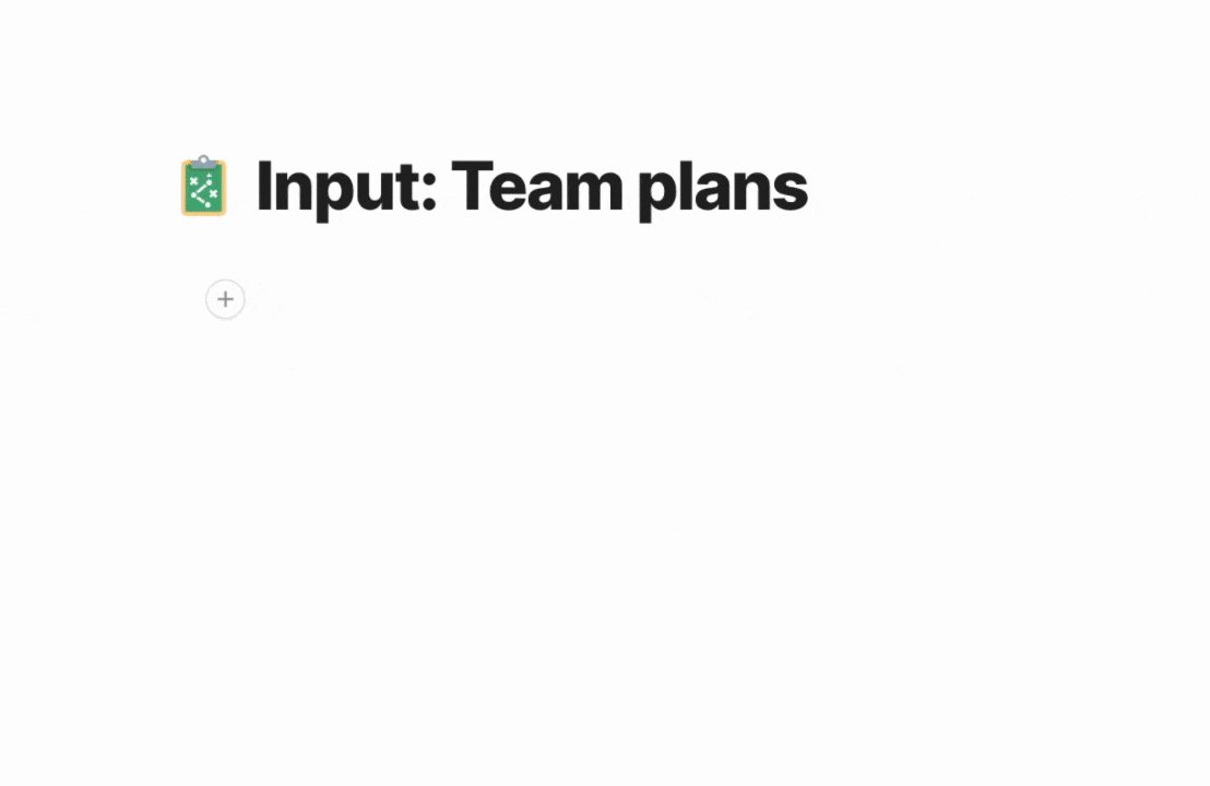 One page with wiki-like information about the planning process, timeline, and expectations. One page to capture meeting notes on all planning meetings. One page to set business context, like a note from the CEO or a strategy memo. One page to gather early input, like challenges or key questions to address in planning. One page to run a team input exercise, like $100 voting or planning poker. One page with a output at the end, in the form of a memo and/or OKRs. Here’s an example that we created to mimic M-shaped planning patterns that we see in many of our customers.