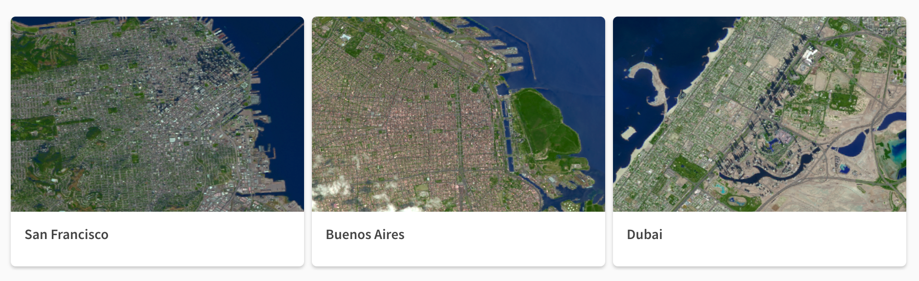 Working with is straightforward but we'll need to provide the latitude and longitude coordinates as query parameters. In the code snippet below, we'll use the from Google Maps to convert city name to an approximate latitude and longitude. Then we can use these to query the to get the satellite image. To help you get started, we've written two functions for you: