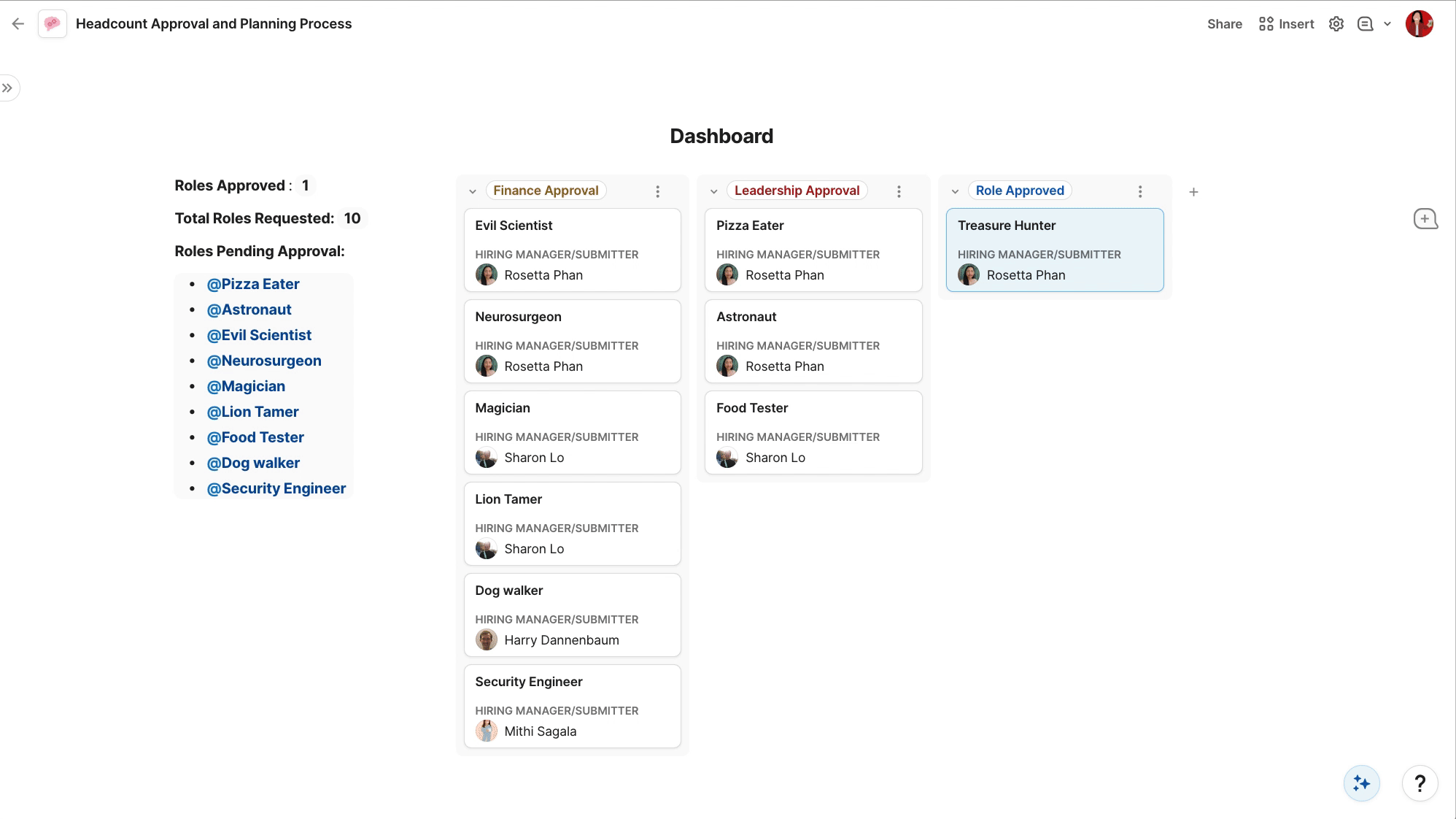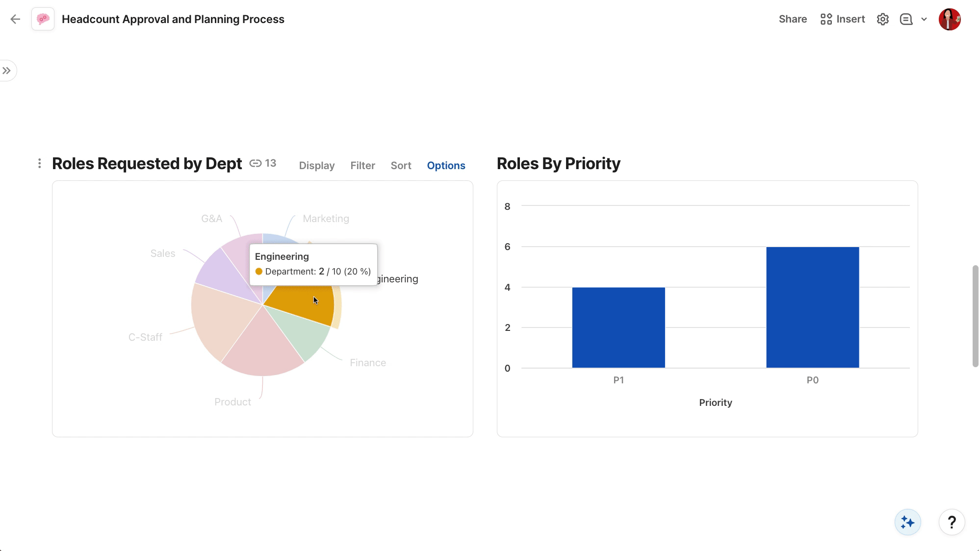And just like that, a workflow has been streamlined and decision-making has been centralized. Hiring managers are no longer left wondering what happened to the role they submitted; they can now look at the headcount doc and see the status of the role approval at any time.