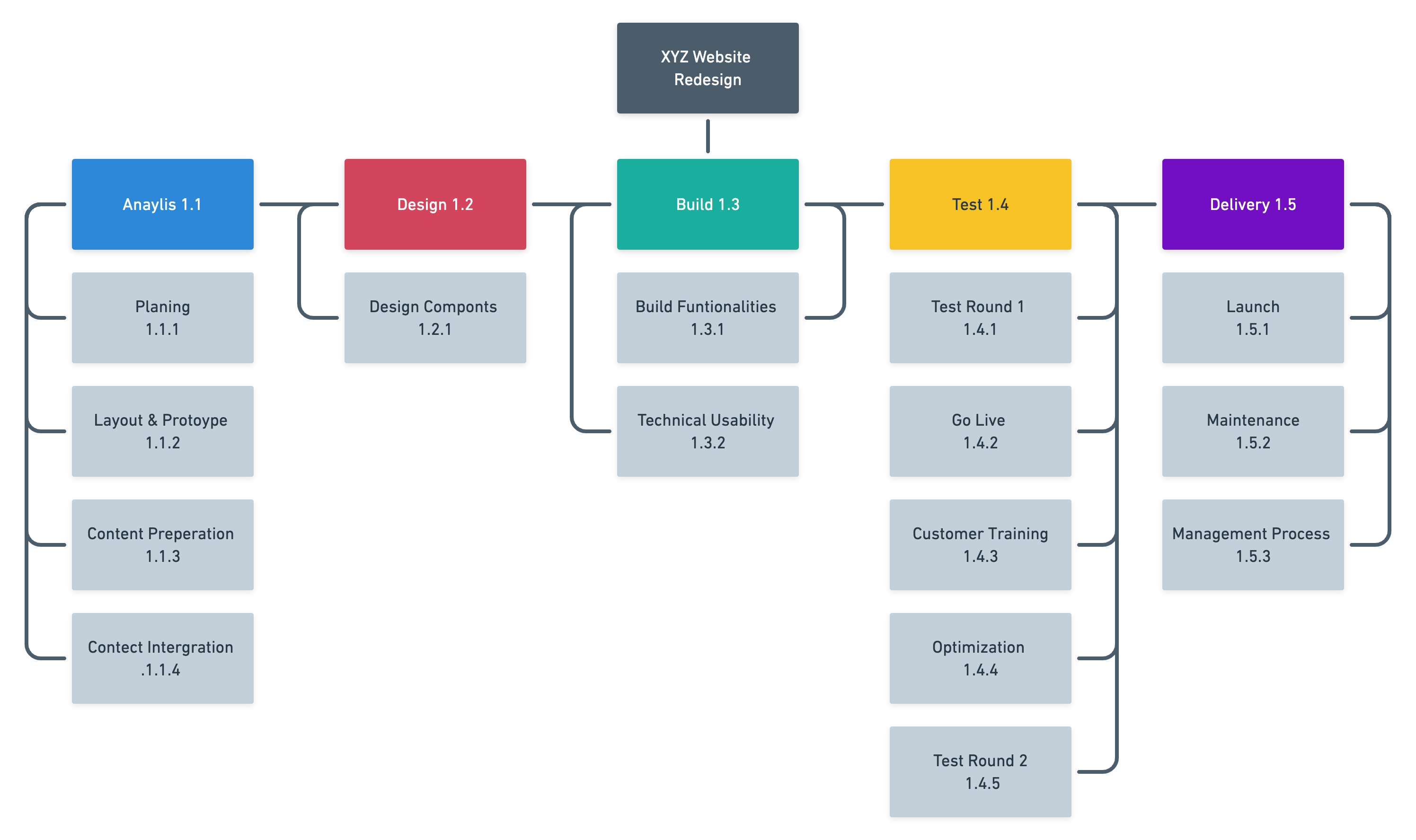 For the XYZ Website Redesign, control accounts will be created at the fourth level of the WBS, where all costs and performance will be managed and tracked. The financial performance of the XYZ Website Redesign will be measured through earned value calculations.